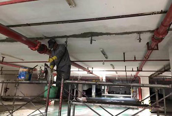 2、基层清理 剔凿渗漏部位表层,铲除水泥砂浆,直至露出地下室混凝土基层,把混凝土基层凿毛,用清水冲洗干净,以便于封闭和观察水源。